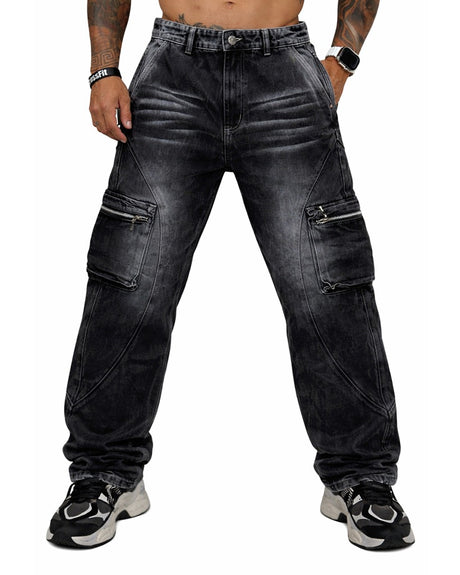 Jean baggy Negro Cargo Bolsillos + Cierres 2606