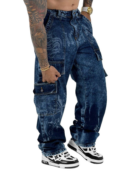 Jean Baggy Azul Cargo SKY Medio Stamp Arabescos 1004/2