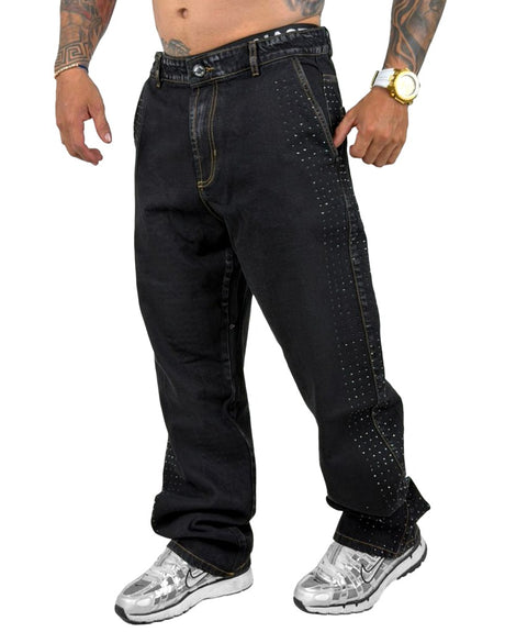 Jean Baggy negro cortes samblast localizado 4001